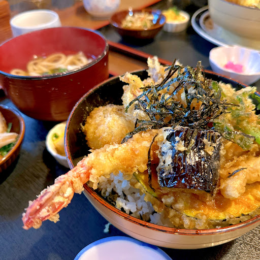 Read more27号線を綾部市方面から舞鶴市に向かう道すがら、舞鶴市街に入った直ぐに右手側に神社が有り、その一角に当店が有ります。前々から一度は来店してみたいと思っており、献血の帰りに寄って見ました。来店は午後2時頃で、昼時も過ぎており、大雨も重なったせいか? 店内、お客さんは居ませんでした。今回、私は、海老、穴子天丼(1200円)を注文してみました。天丼の内容は海老、穴子、ごぼう、蓮根、ししとう、玉ねぎで、小鉢、酢の物、お新香、味噌汁でした。天ぷら、小鉢、酢の物等は美味しかったです。強いて言えば、天丼のタレは甘からず、丁度良かったのですが、私にはご飯の量が少なく、また、ご飯にタレがかかり過ぎていたのが、残念な結果でした。また、お水やお茶等出なかったのも、残念な結果です。 ★★追記★★ 投稿、翌日早々にオーナー様からのご回答有り、ご飯のお代わりが無料である事やサービス面では、セルフサービスで有ることを理解しました。やはり初めての来店時には判りずらい点、メニュー欄に記述が有れば良かったですが、次回...