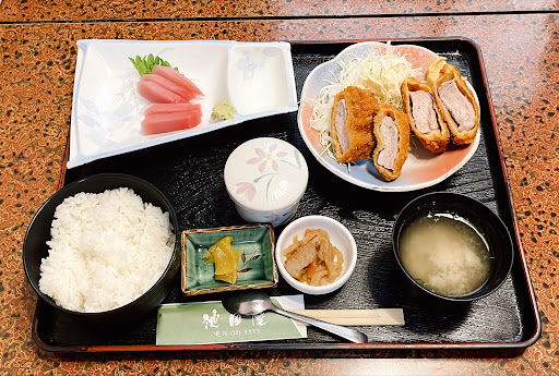 これは好みだと思うのですがヒレカツ自体がやけに柔らかすぎて成型肉のように感じた。自家製と思われるソースが甘過ぎて辛味が全くないためくどい。カラシでごまかそうと全部使ったが賞味期限過ぎたようにカラシも辛くない、、。 茶碗蒸しは茶碗蒸しだが出汁が薄すぎる。素材の香りもしない。しかもぬるい、、😣 わるくないんだろうけど値上げされた分ちょっと期待はしてしまう。 お刺身は小ぶりながらも美味しかったです。白米も美味しかった!