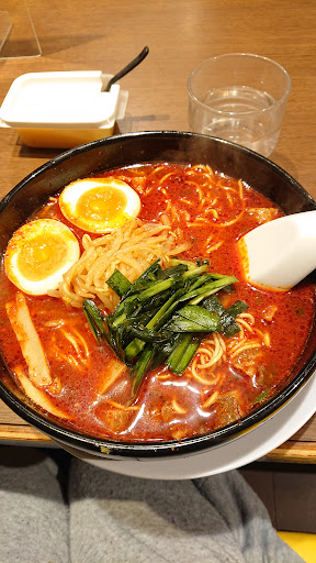 辛さ4以上も出来ましたが、頼んだことないのでとりあえず4辛の旨辛ラーメン。。。 1口目は、目いっぱい吸い込んだので、ちょっとむせちゃうとこでしたwでも旨味が強く、食べてるうちに食が進みます!✨ こってりラーメンは普通に美味しい!中華そばのようなあっさりしたラーメンが好きな人には向かないかもしれませんが、個人的には大好きです。カップラーメンでも出てますが、美味しい( ˆpˆ )♡