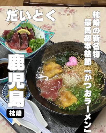 Read moreだいとく@鹿児島県枕崎市折口町17 どうも、さぴおです ✍️かつおラーメン かつおづくしセット 1800円 ______________ 🍥ポイント ✅枕崎産最高級本枯節の軽やかで上質な鰹出汁…枕崎の新名物!かつおラーメン! ✅かつおの刺身、かつおのヅケ天ぷらがトッピング ✅かつおづくしセットでかつおのタタキの刺身と漬け丼が付いてきます  ̄ ̄ ̄ ̄ ̄ ̄ ̄ ̄ ̄ ̄ ̄ ̄ ̄ ̄ [点数] 82点...