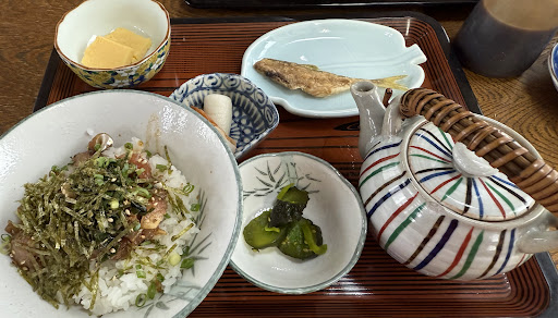 Read moreまあ、口コミというのはまさに人それぞれ。その人が店を訪れた状況が異なるのでどれも正しいのでしょうが、言い換えればどれも正しくない。私たちは、土曜の昼に真鶴を訪れ、有名どころが飛び込みで入店するのが厳しいという状況下、あてにしていたお店も臨時休業。たまたま通りかかった魚伝さん、駐車場に1台も止まっていなかったが、暖簾は出ていたので営業中のようではあった。一瞬ためらって、まずは店を覗こうということになり、そうしたらJRで訪れたらしい先客がいたことに安堵し、入店。まご茶を注文(2050円)。アジの干物の焼き物をサービスしていただき、その後まご茶が届いた。焼き魚、とても美味しい。まご茶は十分なおいしさ。鯵の骨せんべいも付いていて妥当な値段だと思った。カードやペイペイなど電子決済がなく、現金オンリーなのが、唯一残念な点。でも待たずに入店できて美味しく...