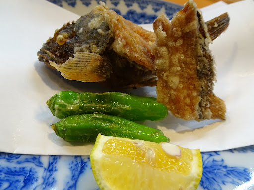 カサゴの唐揚げは、じっくり揚げてあって、頭ごと丸々食べれて、サックサック