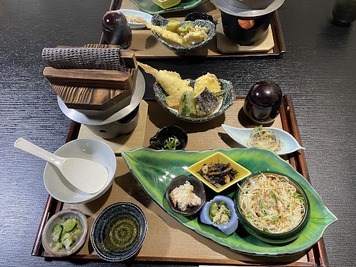 Read moreドライブがてら『ほたる御前』を予約してランチに伺いました。 ほたる御前は席についてから釜飯を炊くとのことでストップウォッチとともに配膳されました。 12分待ちはちょっと長かったけど、個室でお庭も見られるので他の料理をつまみながらのんびり待ちました。炊き立ての釜飯は少し硬めが好きなわたしにはちょうど良く美味しかったです。他のお料理も素朴な味で美味しかったです。 お隣りが声が大きめな年配のご婦人2人と思われますが、障子だけの仕切りのため会話は聞くつもりが無くても筒抜けです。 ほかにも何の音かと思ったら2階を誰かが歩く際は建具がカタカタと細かく振動します。古民家ですから致し方なし。 建具の高さは180センチも無いので男性は頭上注意です。 食事中にはお庭に観光客の一団が入ってこられまたまた聞くつもりが無くてもガイドさんの説明がよく聞こえました。ほたる御前の金額含めた料理説明もされていてなるほどと思いながら食べました笑 お店の方は年配の方が多いですが、感じの良い方ばかりです。 コスモスには早すぎ(今年はコスモスが遅すぎた。)ましたが、コスモスや満奇洞などの観光の...