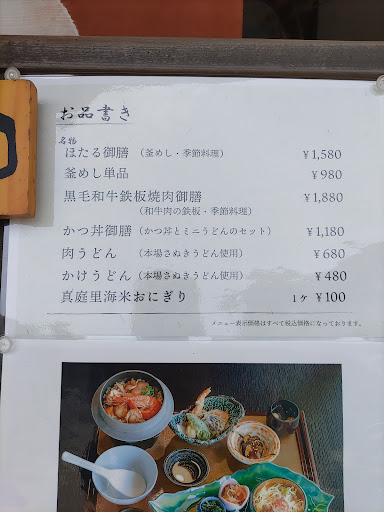 御膳数種と単品メニュー(釜めし単品やうどん)もあるので利用しやすいメニュー構成です。 接客・雰囲気は相変わらずアットホームで親切。静かな空間で気持ちよく食事ができました。 「ほたる御膳」の釜めしもおいしいですし、「焼肉御膳」のお肉はとても柔らかくてこれも美味しい。肥料に牡蠣殻を使って育てた「真庭産のお米」が美味しいですね(^^) ビールと日本酒(熱・冷)もあるので家族・友達との食事にもピッタリですね。