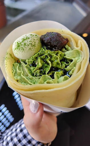 Read more白玉が入った抹茶のクレープ、おいしかったです。 お店は勝山木材ふれあい会館の敷地内で、木材会館とお蕎麦の一心庵の間のスペースにあります。 お店自体は屋外にありますが、木材会館の中の休憩スペースで食べることができます。 混み合う時間帯だったようで数人並んで待っていましたが、女性のスタッフさんがテキパキと対応してくれました。 ただ、小さいお店なのと、注文を受けて1枚ずつ焼いているので、混雑時はしばらく待つと思ったほうが良いと思います。 駐車場は木材会館や一心庵と共用のようですが、お昼など混む時間帯は停められないこともあるので、注意したほ...