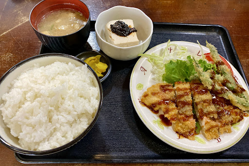 あまり時間を待つ事なく配膳されました。 ジューシーなハンバーグ、小鉢は冷奴。この冷奴にスダチが付いてました。かけるのか?と思い搾って醤油をかける。なんと、めちゃくちゃ美味かった。 今度家でもしてみよ。 ご飯は少々デカ盛りです。