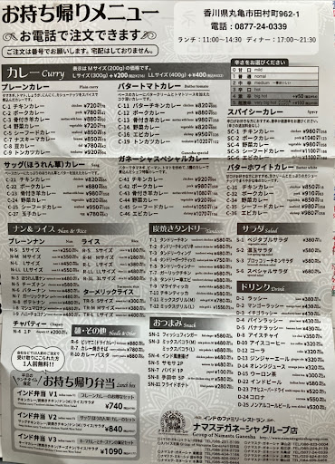Read more出張先で見つけたインド料理店なので初めての訪問です。出張中はほぼ毎日うどんを食しているので今夜は散策してみつけ入店しました。 店員はインド人かスリランカ人でしょうか日本語が上手いのには驚きました。 この店、メニューの豊富さは、地元では有名なインド料理店を遥かに凌いでいると思います。 写真はほんの一部分です。迷った挙げ句、グランドメニューとは別にチキンカレーの限定メニューを見つけ、それをオーダーしました。 カレーに関してはどの店もはずれは無く、美味い。セットになっているナンは写真のように焼き過ぎた箇所があって、ちょっと残念。しかし同席の同僚のはちょうど良い焼き加減であったことには嫉妬しか無い。味は素晴らしく美味しい。なのでナンを追加でオーダーすると、先程とは比べ物にならないほどのデカさで出てきた♪心遣いだろうか。表面に塗ってあるバターも独自の配合で作ってあるそうです。 嬉しさのあと、完食できるだろうかと不安になった。同僚は1枚目のナンで残すほどなので量は多いような気がします。 残念なのは駐車場が3台分しかない事ですね。なので星4つになりました。また訪問してみたいですね。