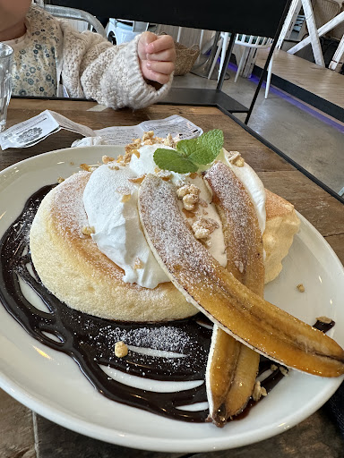 土曜日の午後、予約をせずに来店。 ランチを食べたすぐ後でもう少し時間をずらそうかなとも思ったけどまた後から来ていっぱいで入れないのもなーと思ってとりあえず入店してみることに。 予約をしていないことを伝えるとすんなり小さなテーブル席に案内された。 注文はタブレットから。 店内は4〜5組のお客さん 皆さん注文したものはまだ来てないご様子… ここから約1時間パンケーキが出てくるのをひたすら待つことに。 1時間の間、次々とお客がやってきては予約で満席と断られるか、待ち時間がかなりありますが…と席に案内してもらう…確率は大体半々といったところ。 そのやり取りと実体験でわかったことはパンケーキを焼くのには最低でも30分掛かること、そして注文した飲み物が運ばれて来てから15分以内にパンケーキが出来上がる!ということ 私達はおそらく順番を間違えられて飲み物が届いてからもかなり待たされた。 何故気付いたかというと私達の後から来店された飲み物が届いていない席に同じパンケーキが先に届けられたのを見てしまったから…そしてその席はまた当分待たされてから飲み物ともう一つのパンケーキが届けられていたから。 かなり待ち時間があるお店なので提供する順番を間違えるのは本当に残念。 ですがパンケーキ自体は本当に本当に美味しくてペロリと完食でした。 週末に訪れる際はぜ...