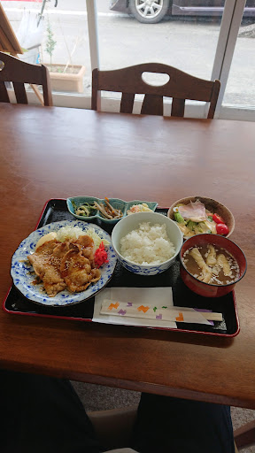 ランチメニューは全品500円で大満足のボリューム。 今回は月曜の定食?のしょうが焼き定食を注文。 甘めのタレに紅生姜とマヨネーズがよく合うしょうが焼きが5枚も。 ご飯も漬物も地元の独特なもので、とても美味しい! お味噌汁も地元の味噌を使っておりとても優しい味。