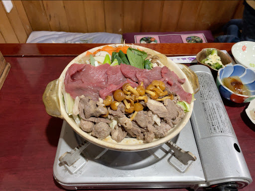 Read more丸森の金八寿司さんに来ました、寿司屋と言ってもお目当ては猪料理です。 10月の被災したのでメニュー表はまだ出来ていないとの事でした。 いのしし鍋を注文したら鍋いっぱいの野菜と肉が目の前に、煮ている間に大根の煮物、お新香、甘味、雑炊のセットまで付いて2200円は安いです。 猪は臭みもなく美味しかったです。外は寒かったのですが体が温まりました。 鍋の中には大根、人参、ジャガイモ、豆腐、ネギなど具沢山です。 次回は...