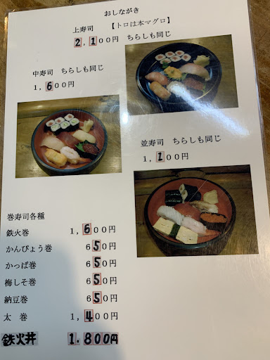 Read more時間がなかったので、パッと行って、サッと帰ってきてしまいましたが、改めて、ゆっくり寄りたいお店です 上寿司(2100円)、中寿司(1600円)、並寿司(1100円)はいつでも、食べられそうです ご主人も、楽しそうな人でもっとゆっくり話を聞きたかったです ま...
