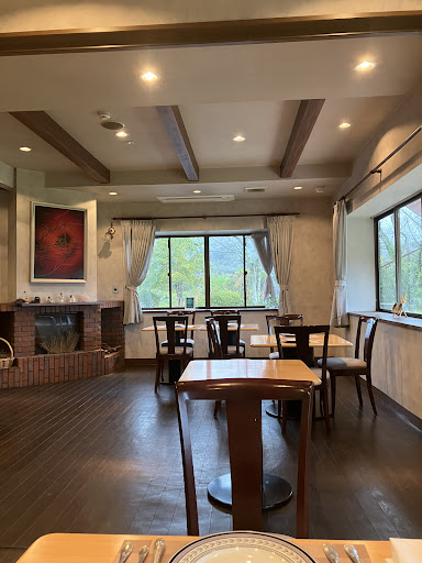 土日だけの営業です。フレンチですが肩の凝らないカジュアルなお店。予約をしていなかったのでパンが焼きあがっていないとのこと。パンが焼けるまでの間、ハーブ畑や菜園、ブルーベリー園などを散策。 ノートルダム・ランチプレートは税別1700円。その日のメインは鶏肉の粒マスタード焼に季節の野菜の温サラダの付け合わせ。デザートのシフォンケーキにはマスカルポーネのクリームとフレッシュな柿・パインが添えられていました。甘みと酸味のバランスが良くて甘いものが苦手な自分も美味しくいただけました。 窓の外には芝生。その向こうにブルーベリー畑、その奥には竹林と杉林。遠くに雨巻山が見えます。店内にはバッハの無伴奏チェロ組曲が流れていました。コーヒーをお替りしながら風景を楽しみ、ゆっくり...
