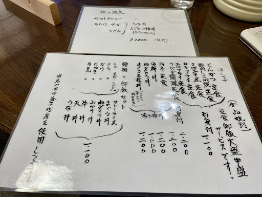 以前から気になっていたお店ですが、三度目の正直でお昼の時間帯に付近を通ることが出来、ようやく訪問の機会を得ました。11時30分、開店直後に一番で入店す。メニューを見て、栃木県民が愛して止まず、朝昼晩どころかオヤツにまで食べたがるという噂があるとかないとかいう噂の”ちたけそば”がどうしても気になってしまい、「秋の限定」のセットメニューから”ちたけそば”と”まぐろ二種丼”1,320円(くっ。我が軽い財布にはかなり荷が重いがやむを得ず)を注文す。まるで茄子の輪切りのような”ちたけ”に驚愕しましたが、食べてみたらやはり茄子。”ちたけ”は汁の底の方に数本沈んでいました。しかしこれは出汁こそが肝なのです。味が濃くて美味しく綺麗に飲み干しましたぞ。まぐろ二種丼もとても美味しかったです...