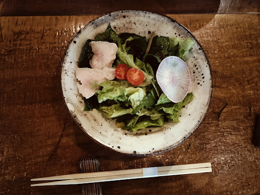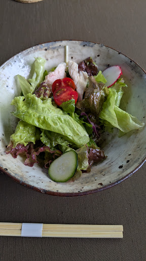 本日はお天気も良く、スクーター号で、住まいの有る宇都宮から、近郊の益子へ。益子は、ちょいと小洒落たレストランが多数ある私の好きな里山の町。 さて、そんなフラッと出かけた益子。Gmapの口コミ評価が高い、こちらのお店へ。初めての訪問。 林の中にある小さなレストランなので分かりづらい。一瞬見逃すも、Gmapの適切な案内によって、迷うことなく店に入れた。入り口の手前の建物には多数の陶器が。食事のあとに酒器のセットを思わす買ってしまった。とても、素敵だった・・だけでなく、お料理の余韻がそうさせてたに違いない。 さて、レストラン。こじんまりしているが、お店の奥はガラス張り。テラスがあるが、カウンターから窓越しに外を眺める席がなんかいい感じ。そのカウンター席の一番左の端っこけに一人陣取った。廻りを見ると、お客様はほぼ女性。おっさん一人で来る人は少ないのだろう。なんとなく場違いだろう視線を感じる。 それにしても・・ 『席の雰囲気、窓外に観える景色・・良い。』期待が高まる。 オーダーはお任せランチプレート。食後のコーヒーも入れて2000円弱。 時間をおかずに一品目。定番のサラダだ・・サラダ・・が、このサラダが・・・美味すぎる。ドレッシングが最高。主張しない。地元で取れただろう野菜が映える。サラダでこんなに感動したのは、ずいぶん久々です。 そしてメインのプレート。プレートに5-6種類の惣菜。別の器で、ご飯モノは、おにぎりのお茶漬け。嬉しいポタージュスープに、茶碗蒸しまで。如何にも女性ウケしそうな組み合わせ・・で、益子のCafeにも多いスタイル。 一口・・ん?やっぱり、優しい味。主張しないけど、ジンワリ沁みる味。先程のサラダでも感じたが、お出汁が良いのだろう。どのお惣菜も口の中で旨味がジンワリと。お茶漬けのスープがまた最高に優しく、舌を撫でる。 いやー、こちらのお料理、本当に素晴らしい。お出汁がポイントだと思うが、如何でしょう?...
