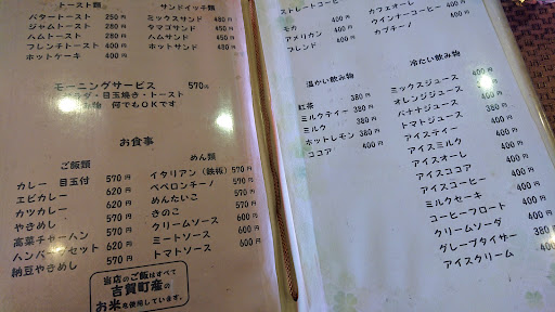Read more益田駅から徒歩15分。大きな交差点の南西角にあります。昭和52年(1977年)創業の純喫茶。鉄板イタリアンとブレンド珈琲をいただきました。鉄板の下に卵を薄くひき、その上にナポリタンスパゲッティ。熱々で美味しかった。ブレンド珈琲はそれなり。列車の待ち時間に利用しましたが、行かれる方は時...