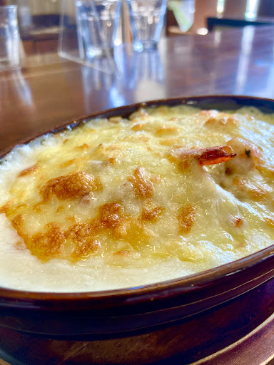 そしてシーフードドリアです♡ ご覧の通り熱々〜〜 グツグツと言う美味しいサウンドを聴きながら、 スプーンを入れると、 なんと!シーフード焼きめしの上に、 たっぷりのチーズがのってます☆彡 このシーフードドリアが、 アサリにイカにエビがゴロゴロ入って、 凄い具沢山なんです♡♡ 熱々を頬張り、 何とも深みのある焼きめしで、 丁寧なシーフードドリアです❤️ めちゃくちゃ美味しいんです♡♡♡