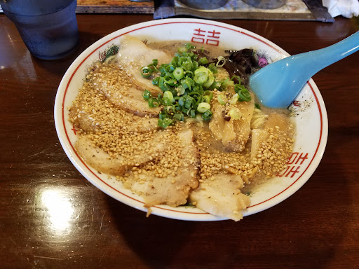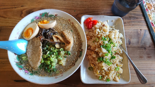 Read more大雨の平日昼に訪問。駐車場は店前で6台位止められる。雨ということもあってすんなり入れた。カウンター席が十いくつと四人掛けひとつと座敷という構成。食券方式。定番ド豚骨700円(税込)とチャーシュートッピング260円(税込)をチョイス。 店に来る前口コミを見てから来たのだが直近のもので「接客が…」とのことで構えて入ったのだが理由がわかった。お客さんが券売機で何を選ぶかを凝視しているため仏頂面になっているようだ。それ以外はいたって普通。 さて、ラーメンがきた。従来の細麺よりやや太めなストレート。スープは濃厚ドロッと系。江津に八百山という豚骨ラーメン屋があるがそれと同等の濃厚さ。が、こちらの方が味がしっかりしている。チャーシュー。肉厚で食べ応えあり。チャーシュートッピングをして6枚のっている。 2枚残して替え玉注文100円(税込)。ゆで加減によるものか替え玉入れるとダマになる印象。絡みが良いとも言いかえられるか。味変の手段が紅ショウガとニンニク。できれば辛子高菜とゴマが机にあるとうれしい。 次回は真逆のあっ...