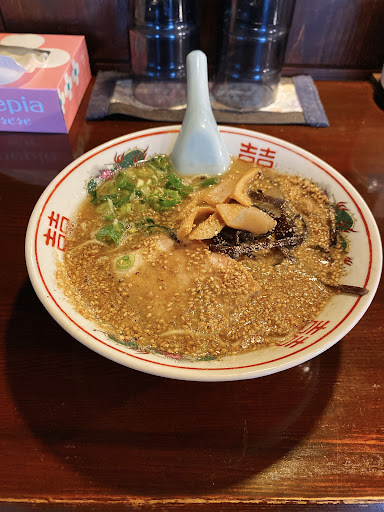 ゴマがたっぷり入っているのが特徴的ですが、味のバランスが良いので万人受けする豚骨ラーメンになっている印象。