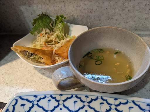 Read more初訪問。悩んだ時は一番最初のメニューが間違いないだろうとパッタイセットに。 パッタイには大きな海老が3匹!けどその他の具材が少ない気が…そもそもパッタイは大好きなんですが、厚揚げみたいなのやもっと具だくさんのイメージだったので、量的に頼りないな…と男性なら思うかも??砕いたピーナッツと生のもやしが添えられてて、砕いたピーナッツはわかるけど、生のもやしの用途がわかりませんでした…ので混ぜて食べました。 サラダの上に乗った春巻きは手作りだと思います!エキゾチックなお味で面白い!スープ付いてました。 私の好きなパッタイのお店はお酢と、砕いたピーナッツ、砂糖、唐辛子が入った薬味をくれて、全部入れて混ぜて食べてと言われ、どんな味になるんだが…と不安に思いつつ混ぜて食べたときの美味しさが忘れられなかったので、私の固定概念が強かった結果の評価になってます、あしからず。 悪い評価に匂いなどありましたが、多分唐辛子を炒めてるんですね、換気がイマイチなのか何らかの調理開始からお客さんもお店の人も辛い香りが苦手な人はみんなむせ始めました(笑)お店の方は元気でめちゃくちゃ大きな声でタ...