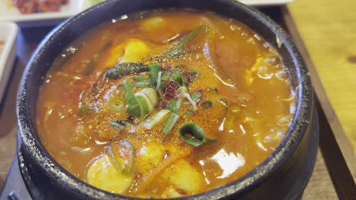 仕事でこの辺ウロウロするのですが、あまり人通りもなく、飲食店も多くない(特にランチ)コチラのお店も気になってたのですが、人通り少ないしお客さん入ってるか外からわからないしで毎回素通りでした。けどスンドゥブ好きなのでこの日は意を決して扉を開けてみました! すると外とは逆でお客さん沢山!期待値跳ね上がる‼︎めちゃくちゃメニュー多くて悩んだけど、やっぱりスンドゥブランチ!店内はご近所さんが多い様子で会計の時みんなあれやこれやとお店の方と話してて和気藹々としてた。 運ばれて来ておお〜!スンドゥブにライス、小鉢3種はアサリのキムチ?美味しい!サラダとチヂミとヨーグルトと豪華!しかも後から焼きたてチヂミもう一つ出てくるとか驚き!熱々って美味しいよね!大満足ランチだったのでまたコチラで...