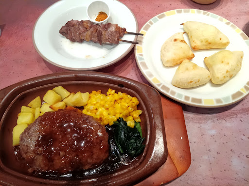 ハンバーグランチとアロスティチーニをいただきました。 ハンバーグランチは、オニオンソース味でプチフォッカ付きでお願いしました。 スープバー付きのランチメニューです。 ハンバーグはオーストラリアの工場で牛100%で作っているそうです。 オニオンソースは、玉ねぎの甘みとチキンの旨み。 ほうれん草とコーン、ポテトの付け合わせ。 プチフォッカは熱々♪。 プチフォッカに残ったオニオンソースをつけても美味しいですね。 アロスティチーニ(ラムの串焼き)は付属のスパイスをつけて食べると美味しい。 (アロスティチーニは、好評すぎて一時期品切れになっていたみたいですね。) 御馳走様でした。