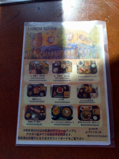 Read more土曜の11:30に、妻と二人で伺いました。 妻は日替わり和定食A(1,100円)、私はくいしん坊スペシャル(1,474円)を注文。 あとから来店された常連客らしき方々の注文は「中華系」が多かったです。 確かに、私が頼んだくいしん坊スペシャルの一品の「炒め物」は美味しかった。 次回は中華メニューにチャレンジしたいです。 帰りにおにぎりと白身フライをテイクアウト! 2023/10