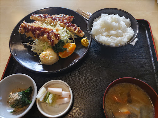 Read more大通りに面しているものの目立つようにあるわけではないので今までかなり通り過ぎていた。勇気を振り絞って利用。 2階にあるため階段を登るのが大変な方は少ししんどいかも。また、テーブル席はすべて畳になっている。昔懐かしさあるが靴を脱がないと行けないので人によっては抵抗あるかも。私は畳が居心地の良くくつろげた。 とんかつ定食を注文するも大きなサイズに圧倒された。肉は薄いものの大きさが大きいため食べ応えあり。 煮物も家庭的な優しい味でおいしかった。みそ汁は若干しょっぱさを感じた。ご飯のお供にはぴったりかも。 満足度高い環境なのでたくさん食べた...