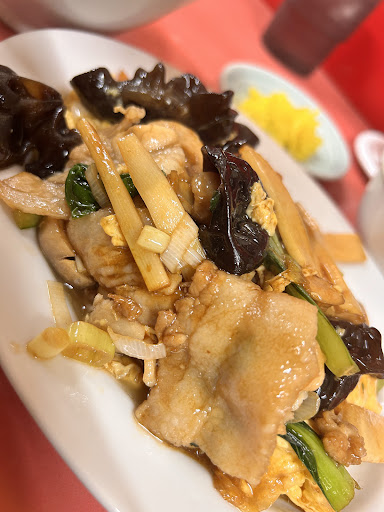 ムーシーロー(木須肉)は絶品♡ 豚肉柔らかい♡ キクラゲが大量で嬉しい♡ 卵はほんのり硬め♡ キノコ、ネギ、タケノコ、青菜(小松菜かな?)、人参とかが入ってて、 めっちゃボリュームあります♡ 味付けはかなり濃いめでご飯どろぼーです♡ ご飯はかなりの量でしたが、 ちょうどよかった♡www