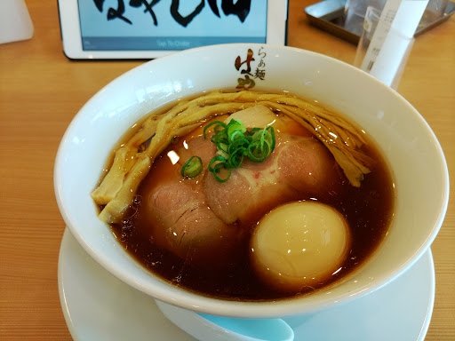 注文後約5分で着丼。盛り付けは美しくて好感が持てます。 まず、鴨と鶏を惜しげも無く使っていると書かれていたスープは透き通ったタイプの醤油スープ。出汁は鶏系で透き通ったスープならばアッサリしながらも繊細なコクが…。とイメージを膨らませますが。 1口飲んでみれば『脂っこい!!』よく見ますと表面5mmぐらい透明な鶏油らしき層が有ります。さほど出汁感は無く、醤油らしき風味を感じられない塩味と化学調味料の味。事前の説明とのギャップに絶句。食べ進むと安い醤油にありがちな塩味の角が気になり、あきらかな化学調味料(原料はサトウキビを発酵させたグルタミン酸)由来の若干の甘さがくどく感じて来ます。 まずスープでガッカリ。 次に麺は全粒粉で細く切った断面が四角い角の有るタイプ。これを普通に茹でて有る。歯ごたえも普通。事前の説明には多加水麺でモチモチと書かれて居るが…。そうか??それでも麺はまあまあ普通。 鶏チャーシューはパサパサしていて小さい。鶏の胸肉なんてパサパサした物でしょと思うかも知れないが、ここの鶏チャーシューよりふっくらジューシーな同じ鶏胸肉の物をいくらでも食べて来た。豚ロースのチャーシューは特に何もなく普通。 薬味は刻んだ青ネギがちょびっと。こんなに脂っこいのに!?特にアクセントにもならず、ただ入れときゃイイだろ程度のネギ。 食べなきゃよかった。久しぶりに食べた事を後悔しました。