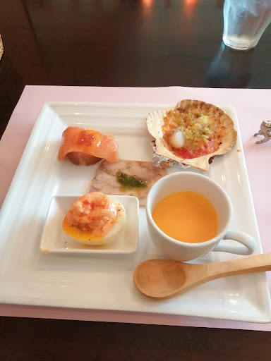 Read more美味しかったです。前菜に少し使われていたトマトソースが凄く美味しかったです。これのパスタを食べてみたい! パスタは 真鯛 トマト と書いてあったので トマトソースかと思ったら 白ワインベースのソースだそうです。 ペペロンチーノではないそうです。あくまでも白ワインベース。大きな真鯛が乗っていて 豪華でした。 そして、パンがもちもちで美味しかったです。 デザートは追加で三種盛りを頼みました。が ハニーロールは 少しぱさつきぎみ、ムースは ホイップクリームみたいで、セミフレッドは元々苦手でした。アイスだと説明されていたので期待していたら、セミフレッドでした。 セミフレッドは残し、ムースをハニーロールに乗せて 頂けました。写真忘れましたが これに、ドリンク付き(アイスコーヒーを選択)で、2000円ちょっとは嬉しいです。もう少し、うちから近かったら もっと嬉しかったですが。 デザートがちょっと残念でしたが トマトソースのパスタを食べてみたいです...