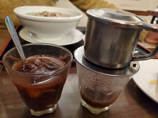 It was tasty and the prices were very reasonable. However, I prefer more attention to detail in flavor. My coffee didn't have enough condensed milk in it so it was bitter and the pho tasted a little bland. That being said, the lumpia, meat skewers, and sandwich were delicious, and there were an incredible number of items on the menu! There were several kinds of vietnamese beers, too! I'm sure that this pace is a godsend to Vietnamese people missing their homeland, because it seemed...