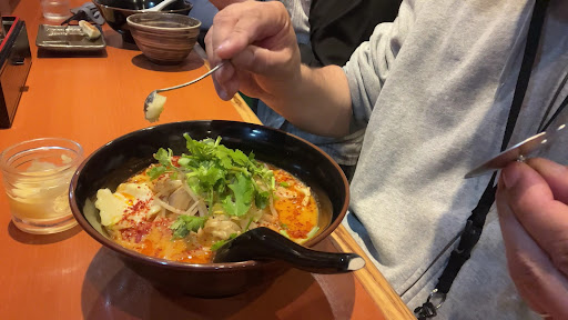 I ordered the coriander with spicy white miso broth. Hmnn… i have been to there store in Kashiwa. The coriander didn’t really add any flavor to the ramen. The spice level could have been ramped up , as it taste alittle weak to me. It’s small bowl serving… i wanted it to be bigger, but it was ok just for a quick eat. The stock is smooth, but i felt it was lacking something. I know with the main spice ramen, it has garlic to add depth. This however, seemed to be lacking. It was fairly average. Staff guy...
