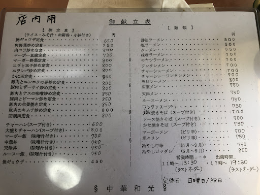 Read more八木文具店の跡地に出来た中華店。 ご夫婦できり盛りされている。 お元気かな? お店の前は毎日通るものの最近はなかなか店内に入って食べる機会がない。 かと言って出前を頼むのも気が引ける。 ここは本当に良いお店です。 雰囲気が最高なんです。 お腹が満腹するだけではなく、気持ちもリフレッシュ出来るお店です。 学生さんのみならず、恐らく営業マンのようなお勤め人の方も食べに来てます。 毎日、お店の外の出入口の所にホワイトボードに書かれたメニューに毎日目が行きます。 駐車場がないので車の方は大変ですが最寄りのコインパーキングに停めて食べる価値はあると思います。 今度久し振りに暖簾くぐ...