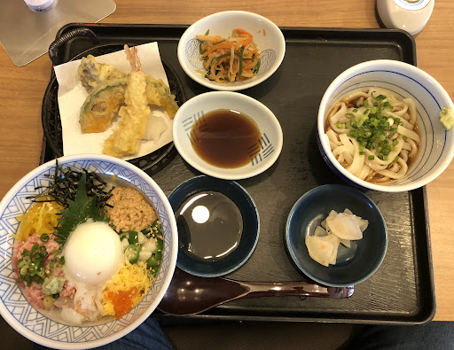 【見どころ・魅力】 メニューは和食を中心に豊富に揃っており、ランチタイム(平日10:00〜17:00)には「若鶏の唐揚げランチ」や「ランチ天丼小麺セット」などのお得なセットが人気です。また、「くるみそば」や「海鮮ちらし重」など、季節の食材を活かしたメニューも楽しめます。