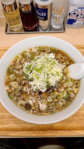 Read more煮干し醤油ラーメン大勝 松戸店 ラーメン小(麺1玉) ネギ増し 永福町大勝軒系"ラーメン専門の店大勝"の二号店 ・ どーも🙇susumuでーす❗ 永福町大勝軒系大好き💕ってことで相変わらずやってるんですけど、今回は「千葉県松戸市」 ラーメン激戦区"松戸"に"永福町大勝軒系"のお店の二号店が6月24日にオープン🎊こちら❗どーん‼️ JR常磐線常磐線各停上野東京ライン新京成線松戸駅から徒歩4分くらいのところにある「煮干し醤油ラーメン大勝 松戸店」さんにお邪魔してまーす🎵 ・ 13時過ぎ。松戸。 三連休中日。朝から外出するな🈲と言わんばかりの空模様☔ こんな日はあえてラードたっぷりの熱々汁アリラーメンを啜りたい‼️ あ、そーいや"永福町大勝軒系"のお店が松戸にオープンしていたな🤔 松戸駅西口を出て少し歩くと 煮干しの香りがぷぅ~~~~ん💕 あった❕❕ 「煮干し醤油大勝 松戸店」さん🎵 待ち無し入店🙋♂️💦あ、 ♂「恐れいりやす。満席でして、、外で少々お待ち頂けますか?」 S「あ、はい!」 なんかスゲ~丁寧😳こりゃ早くも地元の方々にに愛されそうですね😌 5分ほどで入店🙋♂️食券制でーす❗ 大勝軒系って確かけっこう麺量あるんですよね⁉️ 「ラーメン小(麺1玉)¥680」「ネギ増し¥100」をプッシュしました🎵 冷水注いで着席♪ 比較的若いメンバーの3オペ ホスピタリィも言うことないし @柏...