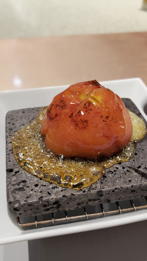 お造り、焼物、煮物と続くが、特に焼物は石窯で焼いたあまーいトマトの中に鶏、エビ、つぶ貝、チーズ等が入っており、組み合わせが秀逸!
