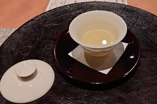 ◆先付 引き立て一番出汁 ◆前菜 蝦夷アワビ 茶碗蒸し 春菊 菊の花 マグロ節 白和え最中 さつまいも 柿 どんこ椎茸 煮こごり しめ鯖 棒鮨 甘海老 酒盗焼き 黄金チーズ 西京味噌 酒粕 ◆お椀 白味噌 クリームチーズ 鰻の蒲焼 茄子 名残りの松茸 ◆造り 北海道ブリ 帆立 ポン酢ドレッシング ◆焼物 トマト姿焼き べっこう餡掛け チーズ 玉ねぎ 鶏肉 エビ ツブ貝 ◆煮物 レンコン蒸し 鰆 銀杏 お麩 蕪 蟹餡 ◆強肴 内腿のローストビーフ 静岡折戸ナス 玉葱 ◆食事 桜海老...