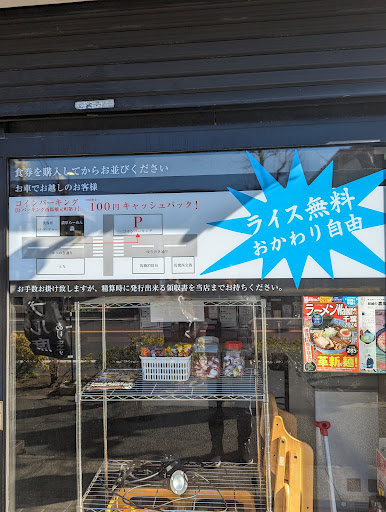 店内出入り口左側にある食券機でメニューを購入し、テーブル席奥にあるウォターディスペンサーでお冷をいただきます。 席に着いたらお好みを強面の優しいお兄さんに伝えましょう! 強面のお兄さんが「ライス入りますか?」と聞いてくれるので食べきれる分だけ注文。 (このライスが旨いので食べ過ぎ注意⚠️)