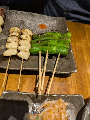 The liver skewers and chicken skin skewers were very tasty. If you order a large jug of fresh lemon sour and pickled plum sour, you can have them poured into the same mug with the pulp still in it. The waitresses were friendly.
