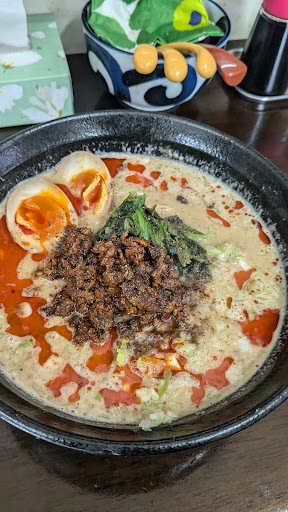 Read more味玉担々麺を頂きました😊 辛さも選べる仕組みでとりあえず普通でお願いしました 味の方は皆さんがおっしゃる通りクリーミーでコクもあり◎とても美味しかったです それと皆さんのオススメの餃子は肉が多めでボリュームも有り食べたら肉汁タラリとこれも抜群に美味しかった✨️