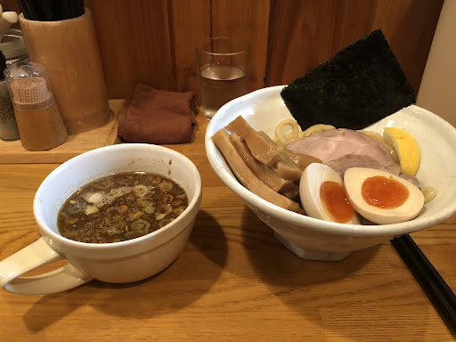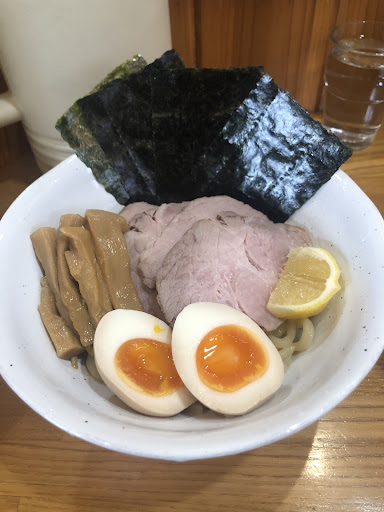 Read more年末の昼過ぎにに何時か来ようと思っていたこの店にようやく来ました。 お店に入ると左手に券売機があり、何にしようか迷っていると、券売機の上には太麺、細麺をマジックで取り消し線で消して、てもみ麺が書いてあり、ラーメンの場合は選択出来るそうです。 しかし、今日はつけ麺を食べるつもりで来たので最上段はラーメン、2段目がつけ麺、3段目があえ麺の行なので、右端に目をやると全部のせつけ麺があるではないか?また、券売機の右端を見るとPayPayのシールがあるので声をかけると、楕円形のカウンターの端っこに座るように言われたので座って待つとPayPayのQRコードを持ってこられて、注文品全部のせつけ麺を告げると普通盛りで良いですか?と聞かれてハイと言うと¥1380ですと言われたのでPayPayアプリでQRコードを呼んで支払いします。 品物が出てくるのを待つ間に券売機を見ると変わったメニューを見つけたがメニュー名だけではどんなものかが分からないので食べログを探したらチャーシューの細切れとネギが入った丼の様なので追加でへたれ丼¥280を頼みました。 しばらく待つと、まず麺が着丼です。麺の中にあるレモンは麺にかけて下さいとのことです。次につけ汁が着丼(コップの様に持ち手が着いてます)です。次にへたれ丼が着丼です。これはそのまま食べるのではなく、スープをかけて食べるそうです。 麺は全部のせなので麺が見えませんでしたがレモンを掛けて、大きいチャーシュー4枚を退けるとストレート太麺で、つけ汁につけると美味しいではないか。大きいチャーシューも柔らかくて美味い。 へたれ丼はスープをかけてるのでライスも美味しい。(これは正解でした)最後まで食べ終わってもまだ追加で食べれそうな美味しさでした。(麺が普通なので)次回はグリルチャー...