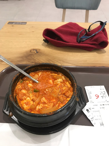 Read more松戸の大型ショッピング施設、テラスモールのフードコートにある韓国料理屋さんです。 店頭メニューの中から自分は「豚キムチスンドゥブチゲラーメン+ライスセット」を。妻は季節限定の「牡蠣スンドゥブチゲラーメン単品」を注文しました。 呼び出しベルが鳴り取りに行くと、豚キムチも牡蠣も、両方見た目は真っ赤で区別が付きませんが、店員さんが「こちらが豚キムチです」と、ライスとセットになったトレーを指して言いました。