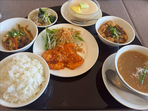 特製榮鳳御膳¥2200 エビチリも油淋鶏も 一度に食べられるなんて嬉しい 普通にうまい。 麻婆豆腐はさすが四川 ただただ辛い‥ フカヒレのスープが食べたことない たとえ用のない旨みが詰まっていて 少しトロッとして最高でした。 小皿のなんて事ないように 見える野菜のやつも美味しかった。