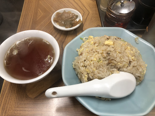 【訪問日時】23/12/24(日)12:17 【待ち人数/時間】なし 【入店時刻】12:17 【席数】2人がけテーブル席×3、カウンター席×10 【スタッフ人数】厨房1人、ホール1人 【お店の雰囲気】町中華 【混雑度合】結構混雑 【着席時刻】12:17 【注文時刻】12:17 【注文方法】席で口頭で告げる方式 【接客】普通 【注文した料理名】チャーハン¥700 【メイン料理到着時刻】12:22 【注文~料理到着時間】5分 【料理の内容】チャーハン、スープ、ザーサイ 【料理の味】普通のチャーハンだが、スープは美味しい。チャーハン単品にザーサイが付くのは珍しい 【支払い方法】現金のみ 【退店時刻】12:31 【滞在時間】14分 【全体的な気づき(感想:良い点、悪い点、トピックス等)】 ①箸が提供されてなかったのでカウンター席の箸を貰う ②チャーハンは配置がもうひとつ(レンゲが手前にありこのままでは食べられないので器を左回りに90度回転) ③ザーサ...