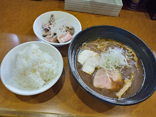 Read more北松戸駅前で徒歩1分くらいのところ。ちょっと奥まってて駅を出てすぐは死角になって見えないです。 店内はカウンターで新しいのでキレイです。夜でしたが比較的空いてました。入り口で食券を購入します。お兄さん一人のワンオペでした。ラーメンとチャーシューご飯を注文。 価格は比較的良心的です。 ラーメンは魚介系スープでスープ自体は症状濁ったサラサラですが魚粉がいっぱい入ってるのでザラザラしてます。あと結構オイリーです。麺は細麺ストレートで断面は丸です。具材は白ネギ、低温豚チャーシュー、鶏ハム×2枚、長いメンマといった感じ。デフォルトでこれだけ入ってて豪華です。味はザラザラスープ、オイリー、低温チャーシューとどれも好みでは無いので普通に感じました。チャーシューご飯はご飯とチャーシューが別皿で来ました。チャーシューは価格に対して角切りのがたっぷり!ただどうやって食べるのが良いかよく分からない。茶碗小さいのでチャーシュー乗っけるとこぼれるし汁気も無いので寂しい。 全体的にコスパが良いのですが好みが合う合わないで評価が分かれそうです。まぜそばもあるので次はそ...