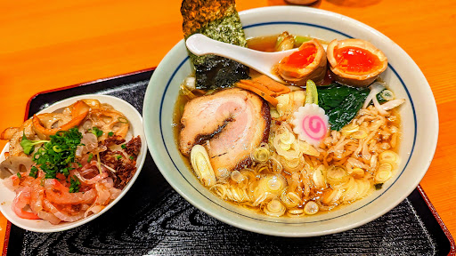 Read more【訪問店舗】味処 むさし野 【訪問月時】2025年3月(土)17:32 【待ち人数/時間】なし(先頭、開店前27分待ち) 【入店時刻】17:59 【混雑度合】やや混雑 【着席時刻】17:59 【席数】6人がけ座敷席×1、カウンター席×6 【スタッフ人数】厨房1人、ホール1人 【注文方法】席で口頭で告げる方式 【接客】普通 【注文した料理名】中華そば¥1050+ 季節のご飯(ぶり丼)¥300 【注文時刻】18:00 【メイン料理到着時刻】18:04 【注文~メイン到着時間】4分 【料理の内容】中華そば、鮪丼ちょい 【料理の味】中華そばは分厚いチャーシュー(多分最初のお客様なのでチャーシューの端っこの切り落とし的な)、麺は平打ち細ちぢれ麺で、スープは懐かしい昭和の醤油味の進化版みたいな優しい味で、最後まで完飲した。また、季節のご飯の鮪丼ちょいには鮪が6切れも入っており、ブロッコリーとイカ(ヒイカ?)2切れも入っていて満足でした 【支払い】後払い 【支払い方法】現金のみ 【退店時刻】18:16 【滞在時間】44分 【全体的な気づき(感想:良い点、悪い点、トピックス等)】 ①...