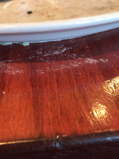 食後に立ち上がったら服に粉が付いてて驚いて見ると、ピッツァのお皿の下が粉だらけでした。