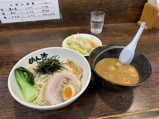 Read moreJR常磐緩行線・武蔵野線新松戸駅&流鉄流山線幸谷駅から、歩いて数分の所にあるらーめん屋『めん吉』さん、スープの美味しさもさることながら、麺量が、普通・中盛り・大盛りと3段階無料で選べます。 じっとりと蒸し暑い日でしたので、さっぱりと「とんこつみそつけ麺」(800円)のチケットを、を券売機で購入します。それと「ゆで野菜」(180円)をトッピング購入。麺量は無論大盛りです(笑)。 さてやってきたのは、ボリューム満点の一品。「ゆで野菜」は温もりがあり、つけスープの温度が下がらないように配慮されています。また、うっすら味付されており、これまた味が薄まらない為の配慮だと思われます。麺も大盛り、ピンと締められており、美味しかったです。最後にスープ割りも楽しみ、久しぶりにラーメン屋さんで楽しめた感じがします。