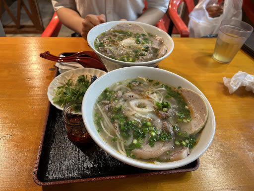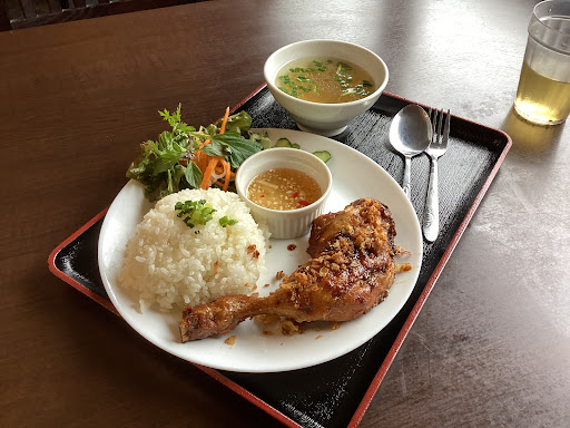 2025年08月12日の14:05くらいに訪問しました。 今日は「たぬきときつね」→「チャイディー」→こちらのお店と、新松戸駅界隈を満喫です。 カウンター席は無いようで1人ですが4掛けテーブルに案内されました。 注文はモバイルオーダーです。「鶏もも揚げのご飯」を注文しました。 店内のお客さんの9割くらいは、ベトナムの方々(たぶん)。 7〜8分くらいで配膳されました。 鶏もも揚げは、1本まるごとでボリュームあります。そのままでもおいしいです。付属の透明なタレ、甘いにんにく酢(たぶん)をかけてもおいしいです。 ご飯はややかためで、好みです。透明なタレをご飯にかけても、よい感じでした。 つけ合わせのサラダは、パクチー入りです。パクチー好きです。 スープは、おだやかな味です。 途中から鶏肉とご飯を混ぜて透明なタレと卓上の辛い赤いタレをかけて食べました。これもよいですね。 店内は異国語の会話でいっぱいです。まじでガチでベトナム食堂です。 paypay使えました。 おいしくいただきました...