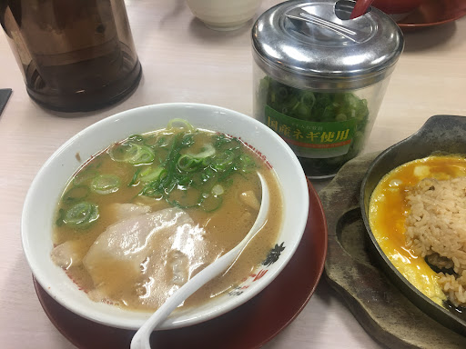Read more2023.01.29 ラーメン 700円 総合5/10点 【スープ】5点 ザ・こっさりスープ。かなりあっさり寄りの。動物性のコクは薄目で、酒と醤油の味が強いのが特徴的。あんまり胡椒とかに頼ってる感じでもない。その代わりハイミーが大量に入ってそうな印象。袋のニンニクを入れるとカップラーメンそのものって味になった。 【麺】3点 昔ながらの多加水麺ストレート。味もコシも弱くすぐ飽きる。量は多めな印象。ちなみに替え玉も同じ麺か太麺が選べるらしい。 【具】5点 まれにみるがっかりロースチャーシュー。パッサパサで完全に火を通しすぎ。かなり薄め。 ネギが入れ放題なのがグレイトサービス。少し乾燥していたがネギの風味はしっかりしていた。 【鉄板チャーハンセット】330円 これは面白かった。鉄板に炊き込みご飯が乗っていて別に溶いていない卵がついてきて、自分で溶いて鉄板に流して自分で混ぜる。自分で調整できるのが面白く、ネギを入れたり、謎の調味料ニンニク唐辛子などを入れるとなかなかうまい。 【煮込みバラ肉ラーメン】950円 普通のラーメンに巨大なチャーシューが3枚も乗ったもの。残念ながらこちらのチャーシューもバラゆえ少しマシだが、やはり火を通しすぎで質の低い角煮のような仕上がり。肉の大きさにしては格安だがスーパーで売ってるやつ載せてるような印象なのでおすすめしがたい。 【日替わり(チャーマヨ丼)】270円 ぱさぱさ薄切りチャーシューにマヨを混ぜたもの。海苔を載せたり、かなり煮込んだ玉ねぎが乗ってたりいろいろ工夫しているが味のレベルが給食の域を出ない。ニンニク唐辛子のせて少しマシになるぐらい。 【総評】 店員の接客もハキハキしていて雰囲気はいいのだが、まぁよくあるチェーンレベルのラーメンすぎる。個人的には合わない。地味にニンニク唐辛子が秀逸で、ありそうでなかった具合。酸味があり、豆板醤にニンニクを入れたような味付け。ほかのラーメン屋で見かけないのが不思議なぐらい自然な調味料。 このラーメンで松戸のボチボチの人気店になっているっぽい、店員の努力がすげぇ印象。店内で80円アイスが買えるのも好...